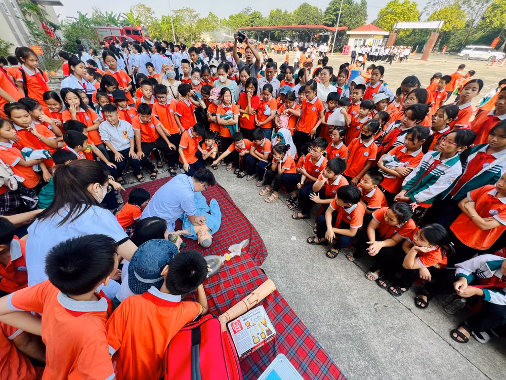 ANTD.VN - Nhằm tiếp tục lan toả mạnh mẽ, nâng cao kiến thức của các tầng lớp nhân dân đối với công tác phòng cháy chữa cháy và cứu nạn cứu hộ (PCCC và CNCH), trong 2 ngày 5 và 6/10, Công an huyện Đan Phượng, Hà Nội phối hợp với Bệnh viện đa khoa huyện, Công ty điện lực Đan Phượng tổ chức tuyên truyền, trải nghiệm, thực hành phòng cháy, chữa cháy và cứu nạn, cứu hộ cho người dân, học sinh, sinh viên trên địa bàn huyện