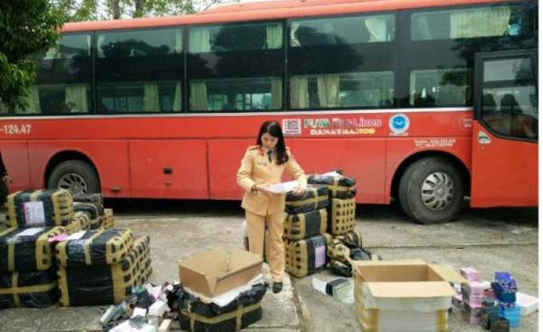 CSGT thu giữ số hàng hóa không rõ nguồn gốc trên xe khách