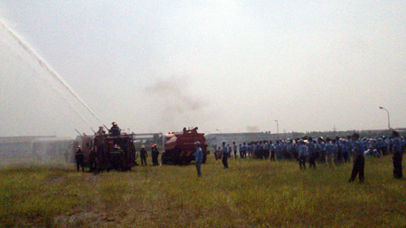 Phát hiện đám cháy, lực lượng bảo vệ đã huy động khoảng 200 công nhân đang làm việc ở các nhà xưởng liền kề tham gia chữa cháy và gọi 114, cấp cứu. Công tác hướng dẫn thoát nạn cho cán bộ công nhân viên có mặt trong điểm cháy ra ngoài an toàn, tập trung di chuyển tài sản cũng nhanh chóng được triển khai. Nhận được tin báo cháy, Sở Cảnh sát PC&CC TP Hà Nội đã điều 4 xe chữa cháy, xe chở nước của Phòng Cảnh sát PC&CC Bắc Thăng Long đến hiện trường, phối hợp với lực lượng cơ sở tổ chức cứu chữa.