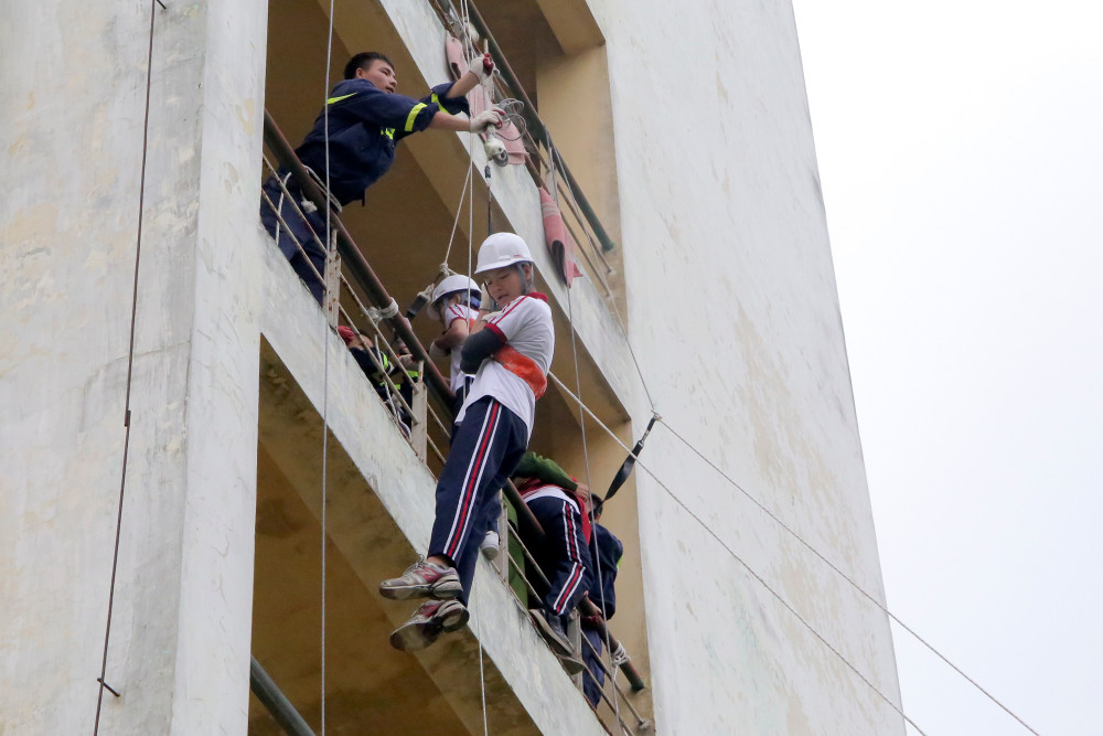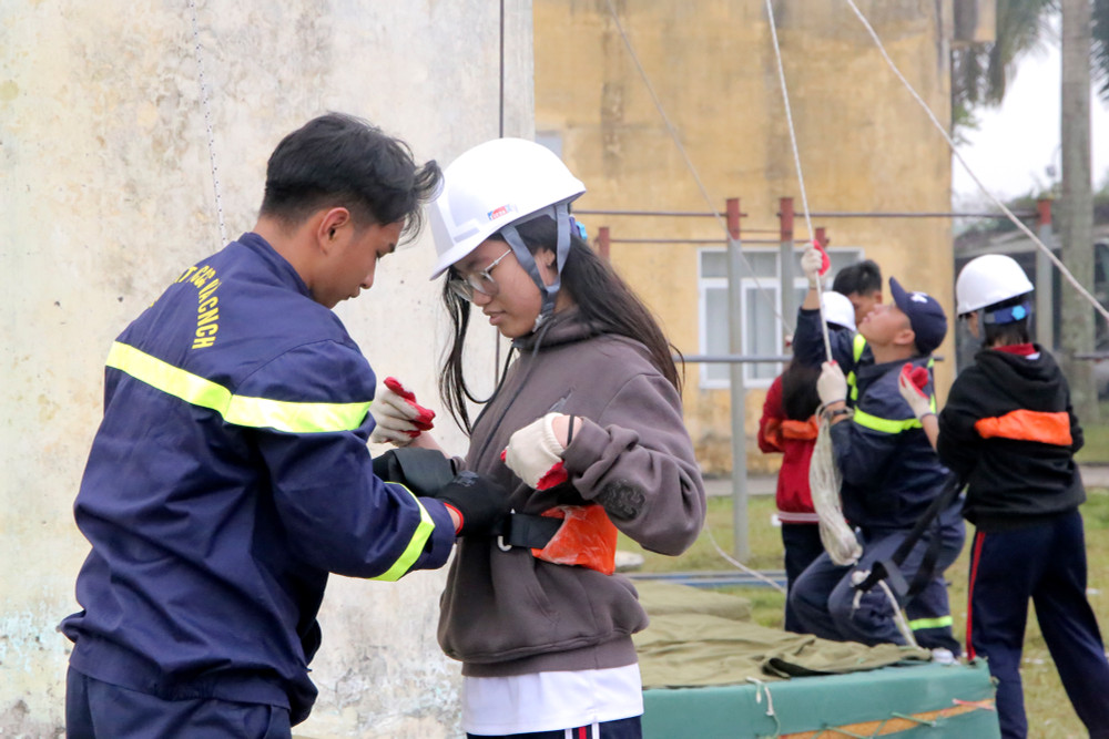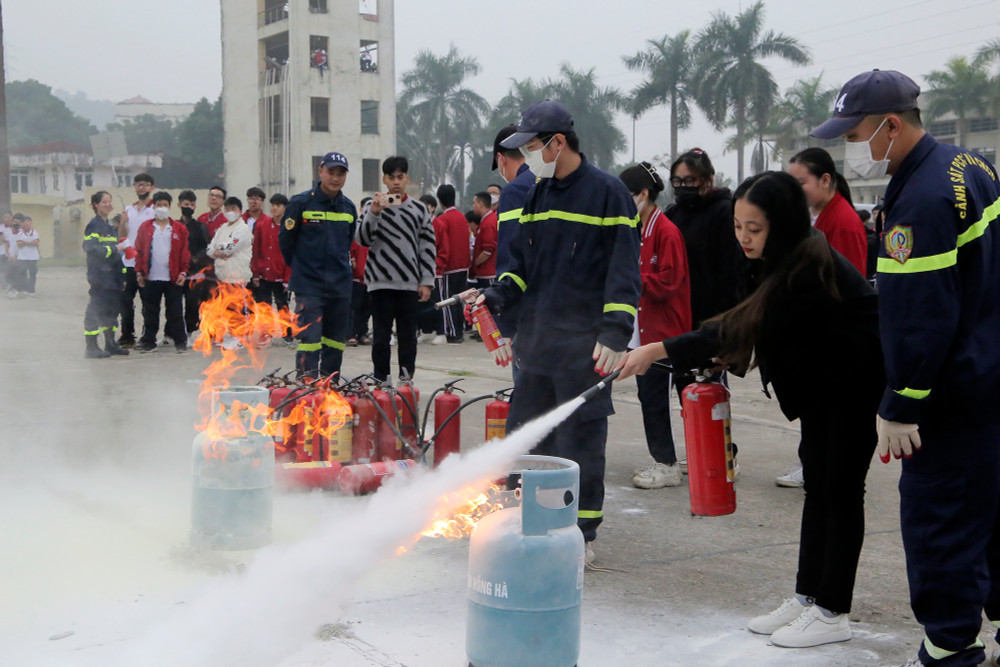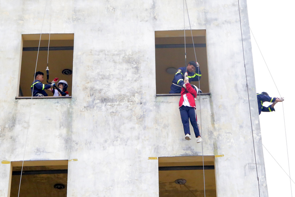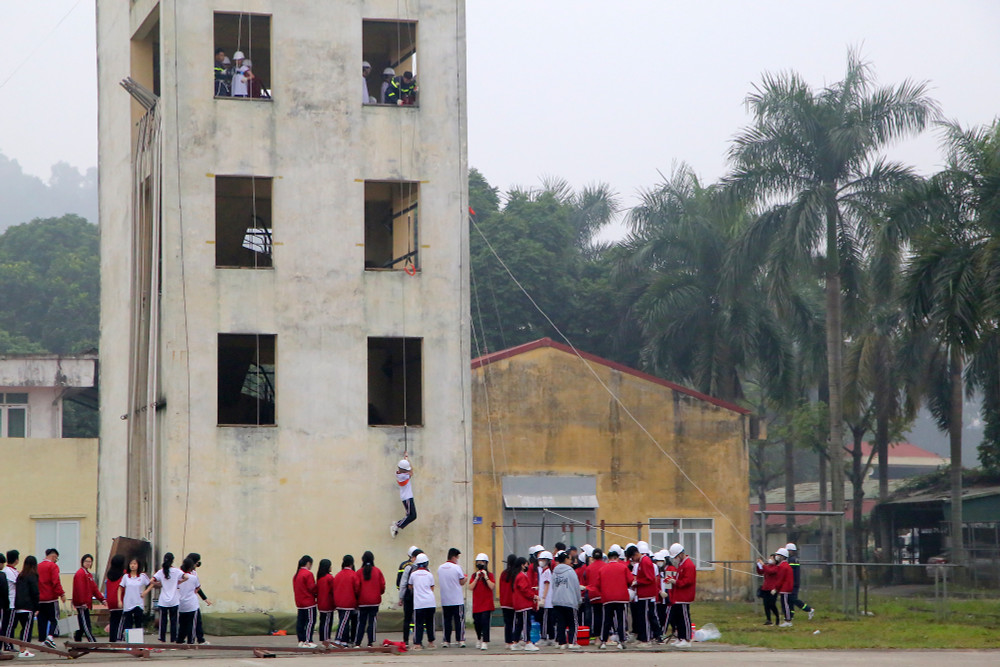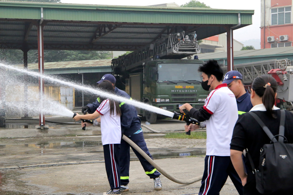 ANTD.VN - Ngày 22-11, gần 400 học sinh trường THPT Hồ Tùng Mậu (Thanh Xuân, Hà Nội) đã được học và trải nghiệm các kỹ năng chữa cháy, du dây thoát hiểm khỏi nhà cao tầng khi có sự cố. Đây là hoạt động nằm trong chương trình học tập trải nghiệm với chủ đề “Ứng dụng khoa học tự nhiên trong phòng cháy chữa cháy” do nhà trường phối hợp cùng Đại học Phòng cháy chữa cháy tổ chức.