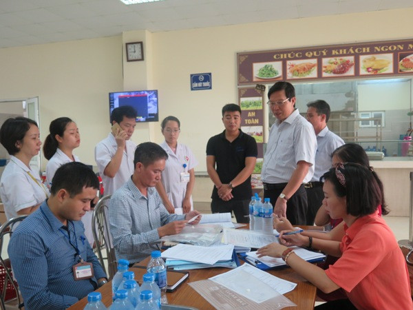 Đoàn kiểm tra của Sở Y tế Hà Nội kiểm tra tại một bếp ăn tập thể trên địa bàn