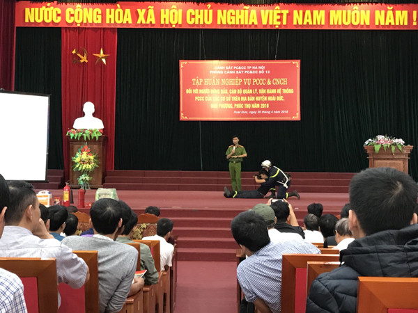 Tại buổi tập huấn, Thiếu tá Nguyễn Tiến Nam, Trưởng phòng Cảnh sát PC&CC số 13, Cảnh sát PCCC thành phố Hà Nội đã phổ biến một số quy định của pháp luật về PCCC và tình hình cháy nổ trong nước, trên địa bàn thành phố Hà Nội cũng như địa bàn các huyện Hoài Đức, Đan Phượng, Phúc Thọ trong thời gian qua. Từ những vụ cháy cụ thể, lực lượng Cảnh sát PCCC đã đưa ra các biện pháp phòng ngừa, đặc biệt là PCCC tại các cơ sở kinh doanh, sản xuất trên địa bàn hiện nay.