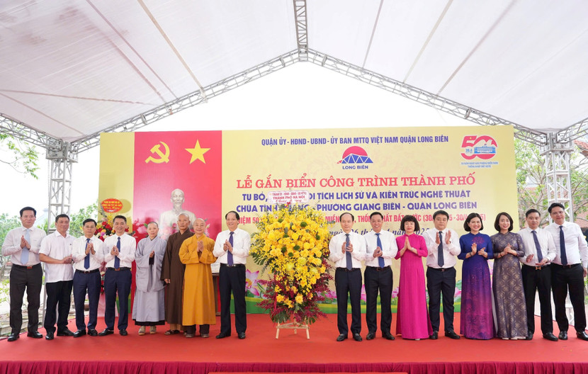 Tại buổi lễ, UBND quận Long Biên đã công bố Quyết định công nhận chùa Tình Quang là công trình chào mừng cấp thành phố nhân kỷ niệm 50 năm Ngày Giải phóng miền Nam, thống nhất đất nước (30/4/1975-30/4/2025).