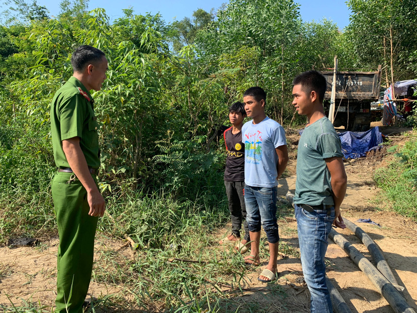 Cơ quan Công an làm việc với 3 đối tượng được thuê hút cát.