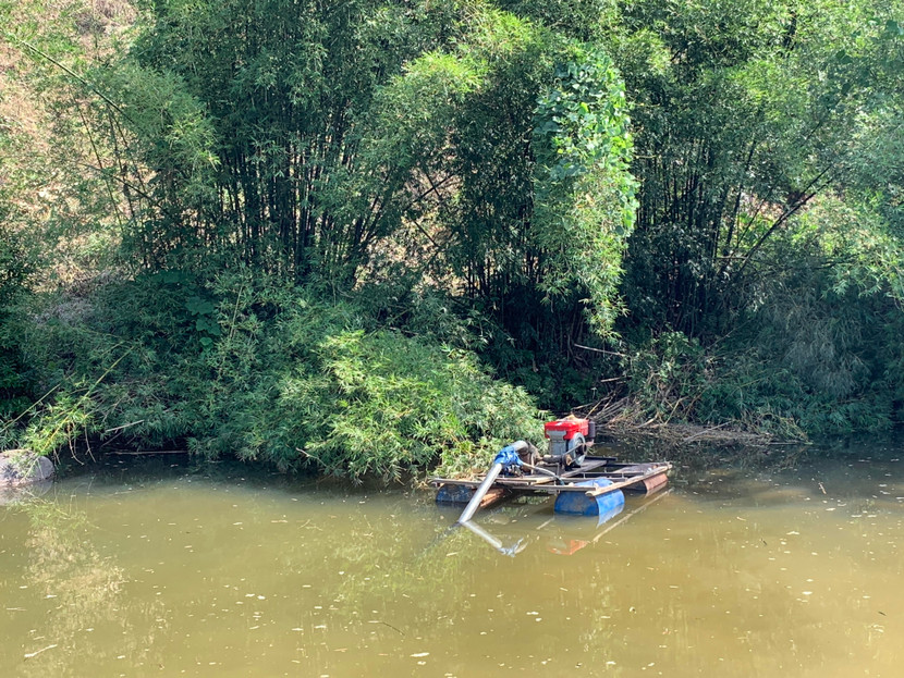 Bè có gắn máy nổ các đối tượng dùng để hút cát trái phép