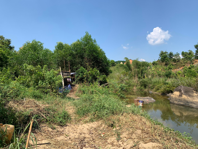 Lán trại các đối tượng dựng sát bên điểm khai thác cát trái phép
