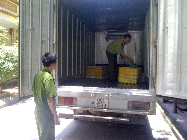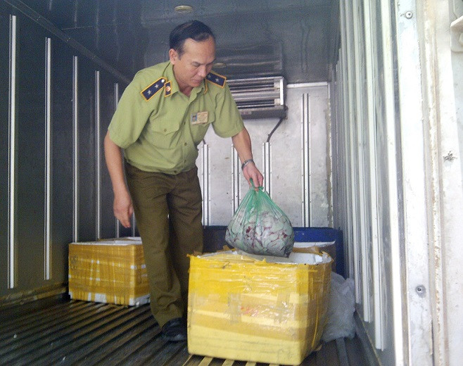Kiểm tra hàng hóa vận chuyển trên xe, lực lượng chức năng phát hiện 10 thùng nội tạng động vật đã bốc mùi hôi thối. Lái xe đồng thời chủ số hàng này là Nguyễn Văn Đông (SN 1980) trú tại Bắc Ninh không xuất trình được hóa đơn chứng từ liên quan đến số hàng và khai nhận, đây là nội tạng thu mua trôi nổi chở từ Bắc Ninh về đến Hà Nội thì bị cơ quan công an bắt giữ.
