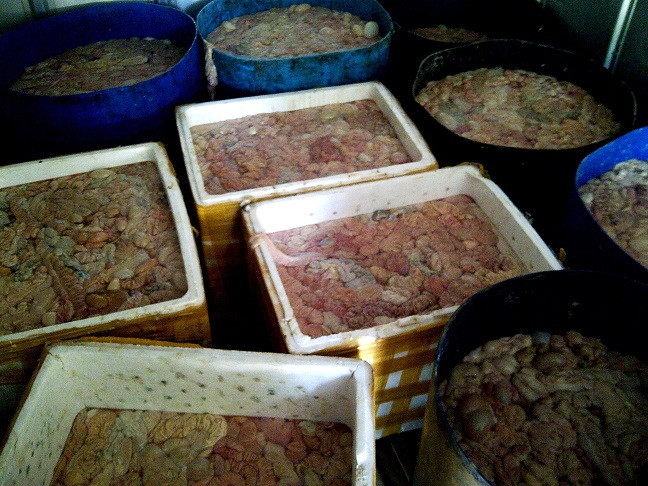 Nhiều thùng nội tạng đã chuyển màu, nổi váng