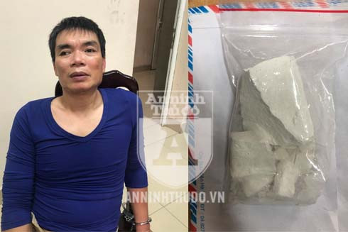 Đối tượng Ngọc bị bắt giữ cùng tang vật là túi ni lông bên trong chứa cục bột nghi là heroin