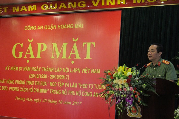 Tại buổi gặp mặt, Trung tá Lê Thị Thu Hiền, Chủ tịch Hội Phụ nữ Công an quận Hoàng Mai đã trình bày diễn văn ôn lại truyền thống vẻ vang của Hội Liên hiệp Phụ nữ Việt Nam qua 87 năm xây dựng và trưởng thành; khẳng định 87 năm qua, Phụ nữ Việt Nam luôn xứng đáng với tám chữ vàng mà Chủ tịch Hồ Chí Minh đã khen tặng “Anh hùng, bất khuất, trung hậu, đảm đang”, trong truyền thống vẻ vang đó có sự góp phần không nhỏ của Phụ nữ CAND.