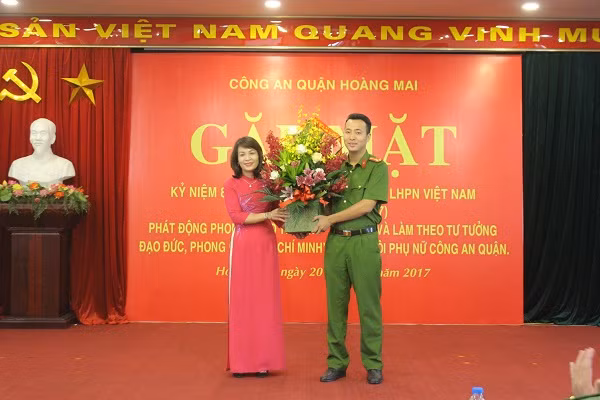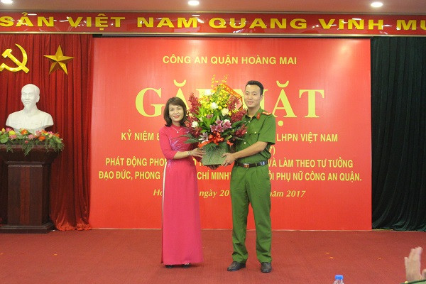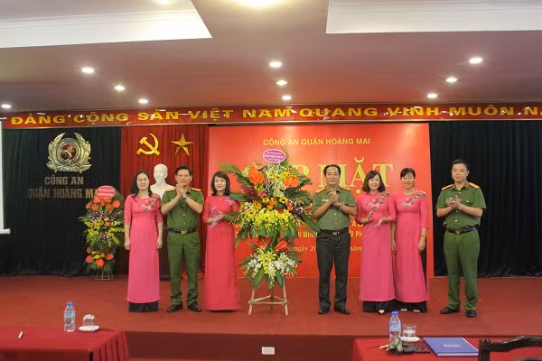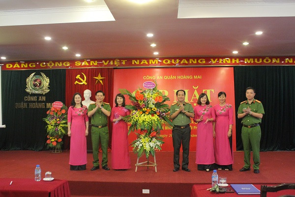 Ban chỉ huy CAQ Hoàng Mai tặng hoa Hội Phụ nữ CAQ nhân ngày Phụ nữ Việt Nam