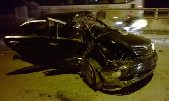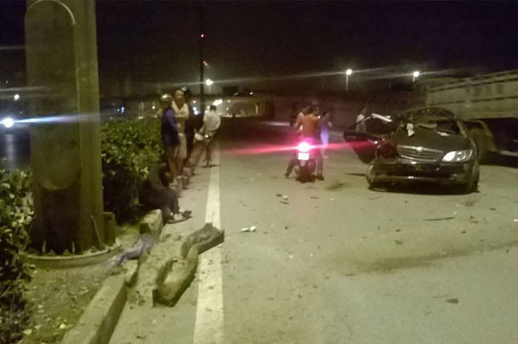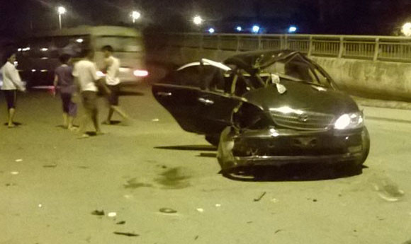 Vụ tai nạn giao thông xảy ra rạng sáng nay (18-6), tại khu vực chân cầu Vĩnh Tuy, Hà Nội. Một số nhân chứng tại hiện trường cho hay, đường vắng, chiếc xe lao đi với tốc độ khá cao. Đến địa điểm này thì xảy ra va chạm mạnh với cột điện chiếu sáng.