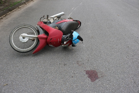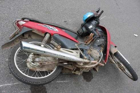 Sự cố xảy ra khoảng 13h30 ngày 2-7, tại khu đô thị 31ha Trâu Quỳ, Gia Lâm. Tại hiện trường, chiếc xe máy bị gãy gập phần đầu nằm chỏng trơ trên mặt đường.