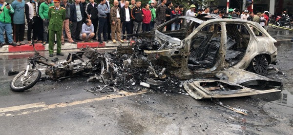 Có ít nhất 1 phụ nữ tử vong, hiện cơ quan Công an đang xác định còn có nạn nhân nào ở dưới gầm xe ô tô bị cháy hay không