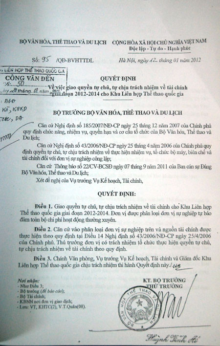 Theo chia sẻ của ông Nghĩa, Khu liên hợp thể thao quốc gia Mỹ Đình phải tự chủ tài chính giai đoạn 2012-2014 theo quyết định của Bộ VH-TT&DL nên lãnh đạo Khu liên hợp phải tự cân đối thu chi. Ngoài ra, ở nhiều hoạt động, Khu liên hợp thường xuyên phải bù lỗ.