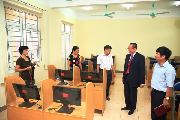 Các đại biểu tham quan Phòng Tin học trường Tiểu học Ninh Giang do Generali Việt Nam tài trợ