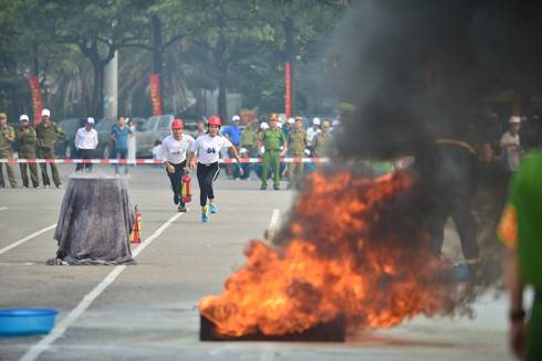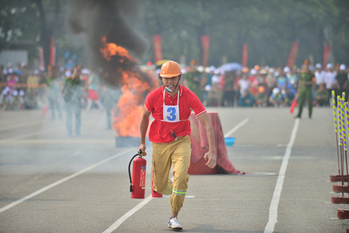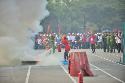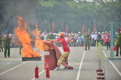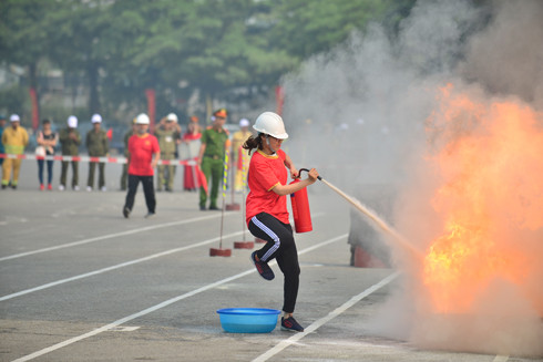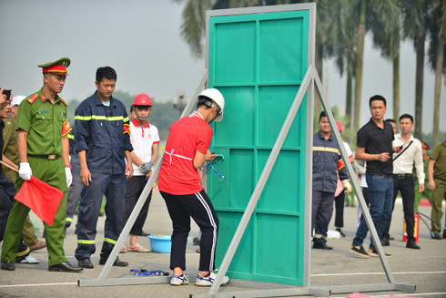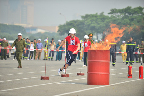 ANTD.VN - Lực lượng chữa cháy cơ sở thuộc các quận, huyện trên địa bàn Hà Nội đã trổ tài các màn dập lửa phuy xăng, khay xăng, mở khóa cửa rất nhanh, chính xác tại Hội thao chữa cháy nhằm hưởng ứng Lễ phát động “Ngày toàn dân phòng cháy, chữa cháy 4-10”.