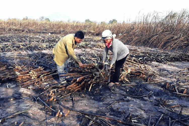Bà Năm buồn bã cho biết: “Khi nhận được tin mía cháy ở cánh đồng, gia đình tôi đã hô hào mọi người ra giúp dập lửa nhưng do lá khô, lửa bén nhanh nên 2 ha mía bị thiêu rụi hoàn toàn. Mía cháy teo hết cả cây thế này, sản lượng ước tính tụt giảm gần 50%, lại còn bị trừ tạp chất 20% nữa nên chắc không đủ trả chi phí đầu tư cho nhà máy, phải lấy tiền túi ra trả thôi”.