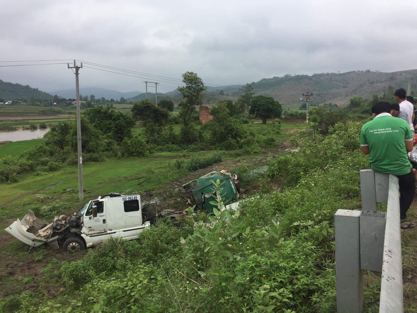 Khi đến đoạn thuộc thôn Blom, xã Kim Tâm, huyện Ia Pa, thì xe bồn bất ngờ tông vào rào chắn rồi lao xuống vực.