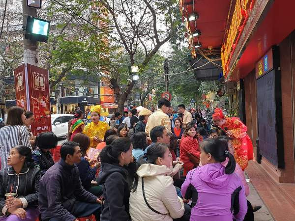 Ghi nhận của phóng viên trong sáng 14/2, nhu cầu mua vàng của người dân tăng mạnh. Nhiều người dân xếp hàng từ sáng sớm, khi các cửa hàng vàng chưa mở cửa để chờ mua vàng cầu may. Đến gần trưa, rất đông người vẫn đổ về các cửa hàng vàng trên phố Trần Nhân Tông (Hai Bà Trưng) và khu vực Cầu Giấy.