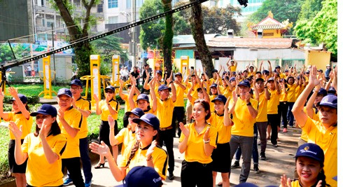 Cán bộ nhân viên Sun Life Việt Nam tham gia buổi tập thể dục ngoài trời tại Công viên