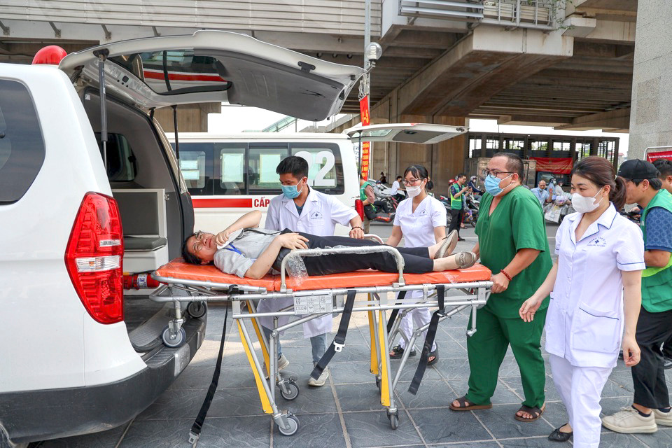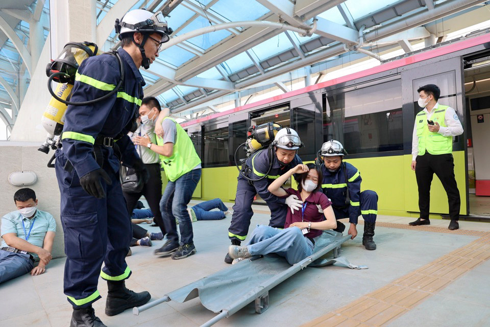 ANTD.VN - Ban Quản lý Đường sắt đô thị Hà Nội vừa tổ chức diễn tập ứng phó cứu nạn hành khách tại nhà ga tuyến Nhổn - ga Hà Nội. Buổi diễn tập có sự tham gia của Ban Quản lý đường sắt đô thị Hà Nội cùng Phòng Cảnh sát PCCC&CNCH, Phòng Cảnh sát Giao thông, Công an quận Bắc Từ Liêm, Sở Y tế Hà Nội... nhằm kiểm tra khả năng phản ứng của toàn bộ hệ thống để xử lý sự cố lớn khi đưa đoạn tuyến này vào khai thác thương mại.