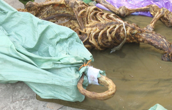 Xương động vật thu được trong nhà ông Nguyễn Văn Minh