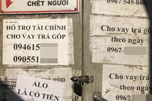 Quảng cáo cho vay tiền dán khắp nơi. Ảnh: Phạm Dự