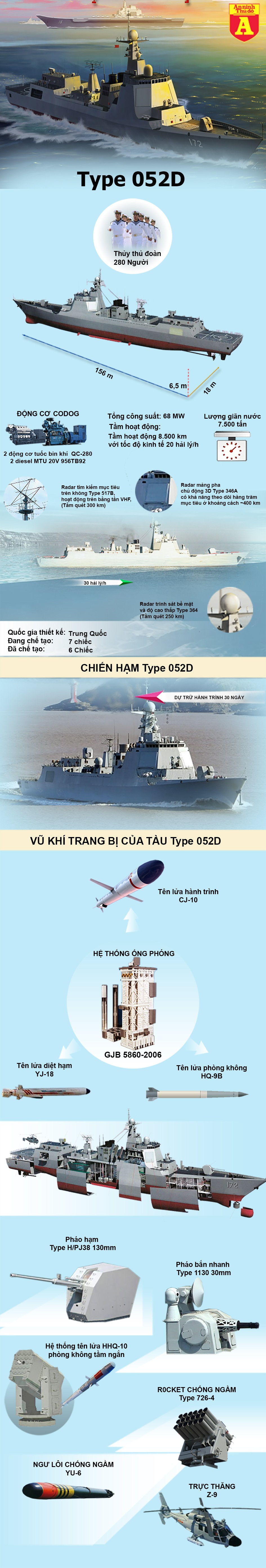 Type 052D là lớp khu trục hạm hiện đại của hải quân Trung Quốc. Côngviệc đóng khu trục hạm lớp Type 052D đầu tiên bắt đầu vào năm 2012 và chiếc tàu này được đưa vào biên chế trong năm 2014. Đến cuối năm 2022, tổng cộng 25 chiếc Type 052D đã được đưa vào biên chế và có ít nhất 6 chiếc nữa được cho là đang được đóng.