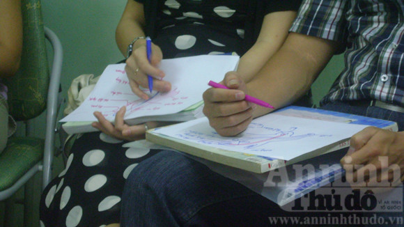 Ở đó đã có 3 đôi rưỡi “yên vị” với giấy và bút. “Rưỡi” ở đây là một bạn gái nhỏ nhắn khoảng 24 – 25 tuổi, sau này hỏi chuyện tôi mới biết là bạn chuẩn bị lập gia đình và bạn trai của Hương, tên cô bạn gái nhỏ nhắn đó, đang đi công tác xa, nên không cùng cô tham gia lớp học được. Nhưng Hương cho biết, cô và bạn trai thường xuyên tâm sự vì thế “những điều học được từ lớp học này, mình đều chia sẻ với anh ấy”.