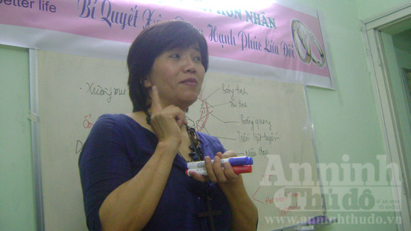Đang trao đổi cùng các thành viên, bỗng “cô giáo” Hoa quay sang hỏi tôi “Phóng viên đến lấy thông tin viết bài hay để trang bị kiến thức cho mình đấy?”. Tôi đáp “Dạ, cả hai”. “Đúng”. Và để lý giải cho cái sự “đúng”, “cô giáo” Mai Hoa cho biết “hầu hết mọi người đều khẳng định tình dục có vai trò cực kỳ quan trọng trong hôn nhân. Tuy nhiên, con số thống kê cho thấy, có hơn 30% các cặp vợ chồng ly hôn chính bởi nguyên nhân không hòa hợp về mặt tình dục. Vì vậy, các bạn trẻ cần phải trang bị những kiến thức cơ bản về tình dục trước khi bước vào cuộc sống gia đình”.
