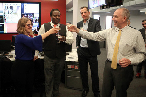 Phóng viên báo The Daily News ăn mừng khi giành giải Pulitzer