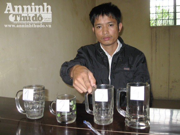 Nguyễn Đình Trường chỉ loại cốc dùng để tấn công nạn nhân