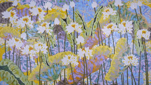 Vốn là “giai phố cổ” nhưng lại sống ở hồ Tây, Phương Việt trước khi được người yêu nghệ thuật biết đến với biệt danh “Việt Sen” đã từng có tên gọi “Việt hàng Mã”. Biệt danh này không chỉ để người nghe hiểu rằng anh từng có thời gian gắn bó với khu phố cổ từ những ngày bé tí tẹo mà còn hàm ý rằng họa sỹ rất sành sỏi đồ thờ cúng. Ấy thế mà, từ ngày làm Phật tử chùa Hương, chuyên chú nghiên cứu kinh pháp, anh lại hứng thú với sen. Sen mà Phương Việt vẽ là sen trắng, tinh khôi tượng trưng cho sự thuần hóa nhân tính. Tất nhiên, khi vẽ về loài hoa cao quý này, câu chuyện mà họa sỹ mang trong đó không còn dừng ở việc miêu tả vẻ đẹp của hoa mà chuyển tải sâu sắc thông điệp của đạo Phật.