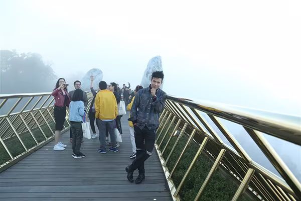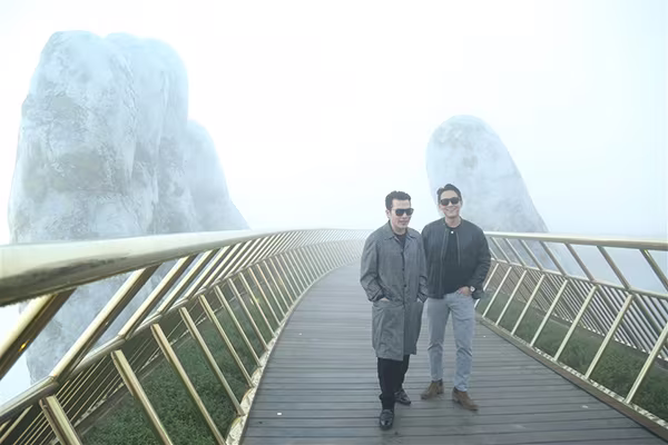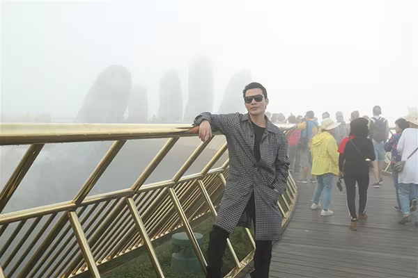 Diễn viên trẻ Trương Thế Vinh cũng không thể làm ngơ trước “tuyệt tác kiến trúc” Cầu Vàng. Anh vừa check in với bạn bè, vừa suy nghĩ về những phân cảnh có thể diễn ra nếu cây cầu được chọn cho một bối cảnh phim nào đó.