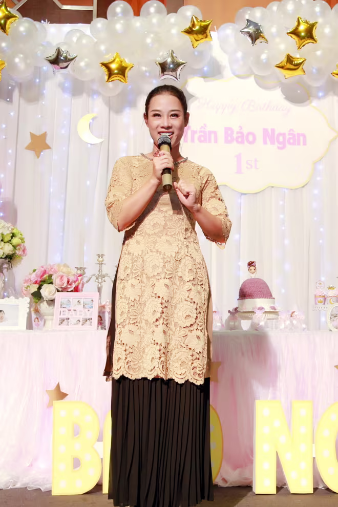 Trong tiệc mừng sinh nhật con gái Bùi Lê Mận tròn 1 tuổi, các nghệ sĩ đã góp vui bằng nhiều tiết mục âm nhạc thú vị. Lần đầu tiên, nghệ sĩ Việt Hoàn song ca với MC Mỹ Vân, ca sĩ Anh Thơ hát ca khúc “Mừng sinh nhật” với dàn ca sĩ Sao Mai, ca sĩ Đăng Thuật song ca với Bùi Lê Mận, ca sĩ Hoa Trần (vợ nghệ sĩ Việt Hoàn) gây ngạc nhiên với ca khúc trữ tình…