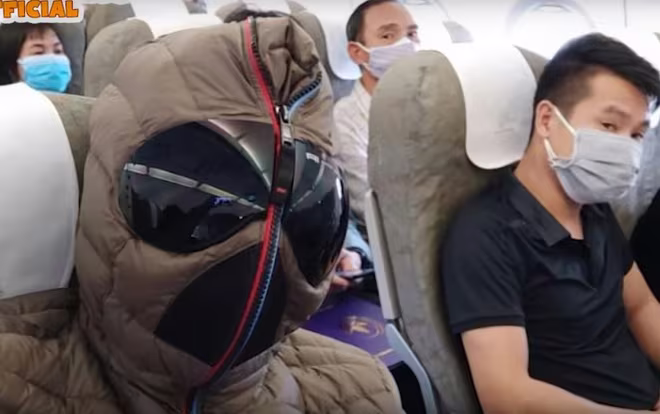 Chiếc áo của anh che kín toàn bộ thân và gương mặt, kèm theo lớp kính đen. Thậm chí anh dùng thêm hai lớp khẩu trang vải và đeo gang tay cao su, liên tục xịt nước sát khuẩn để đảm bảo an toàn tuyệt đối. Khi Xuân Bắc bước lên máy bay, không ít hành khách nhìn theo vì bộ dạng kỳ quái của nam nghệ sĩ và cũng không ít người e ngại danh hài sẽ bị ngộp thở.