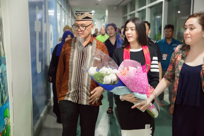 Tại sân bay quốc tế Manila của Philippines, Lý Nhã Kỳ được Đại sức đặc mệnh toàn quyền Việt Nam tại Philippines – ông Trương Triều Dương ra sân bay đón và chúc mừng.
