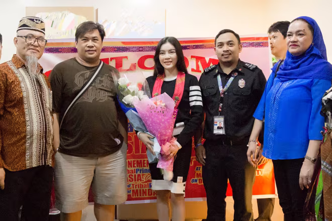 Cũng tại sân bay, Lý Nhã Kỳ được mời vào phòng riêng với biểu ngữ chào đón trang trọng. Những người phụ nữ giữ vị trí lãnh đạo cao cấp của bộ tộc đã dành cho Lý Nhã Kỳ những cái ôm nồng thắm, những lời hỏi thăm. Người đứng đầu bộ tộc Mindanao cũng như phái đoàn đã bày tỏ sự hân hoan đón Lý Nhã Kỳ tới đây.