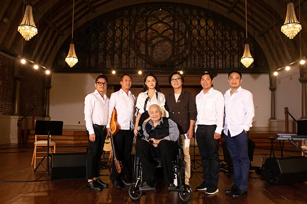Nhạc sĩ Lam Phương luôn có mặt để động viên Hoàng Hiệp và Phạm Quỳnh Anh