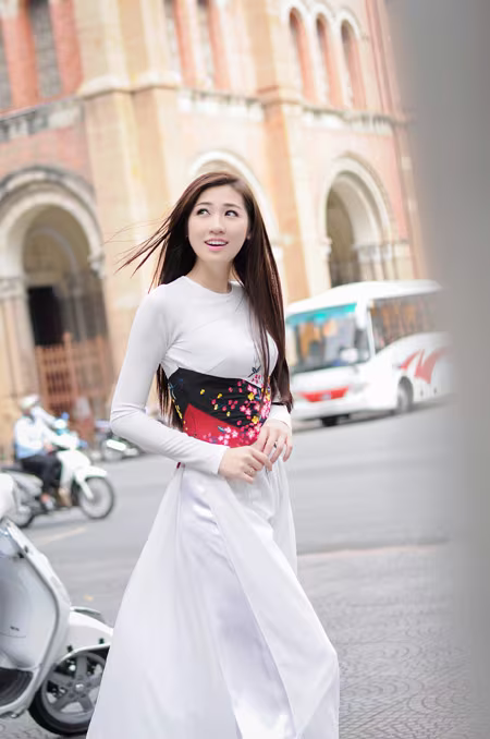 Nhân dịp vào Sài Gòn công tác, Tú Anh đã tranh thủ tạo dáng trong bộ áo dài tinh khôi