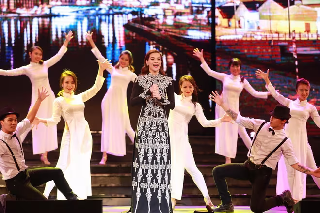 Ngoài ra, màn cat-walk của các người đẹp, hoa hậu trong những bộ áo dài ấn tượng của NTK Tuấn Hải và Quỳnh Paris cũng để lại dấu ấn sâu sắc khán giả Hà Nội.