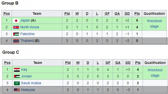 Trong khi đó ở bảng B, U23 Thái Lan - đội bóng được đánh giá mạnh nhất Đông Nam Á, đã chắc chắn bị loại sau 2 trận thua trước U23 CHDCND Triều Tiên và U23 Nhật Bản, với cùng tỷ số 0-1.