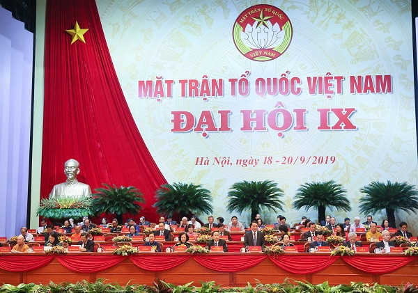 Đại hội đại biểu toàn quốc Mặt trận Tổ quốc (MTTQ) Việt Nam lần thứ IX, nhiệm kỳ 2019 - 2024. Đại hội diễn ra trong 3 ngày (18 - 20/9/2019) với sự tham dự của 1.300 đại biểu, trong đó có 999 đại biểu chính thức.