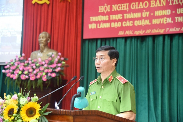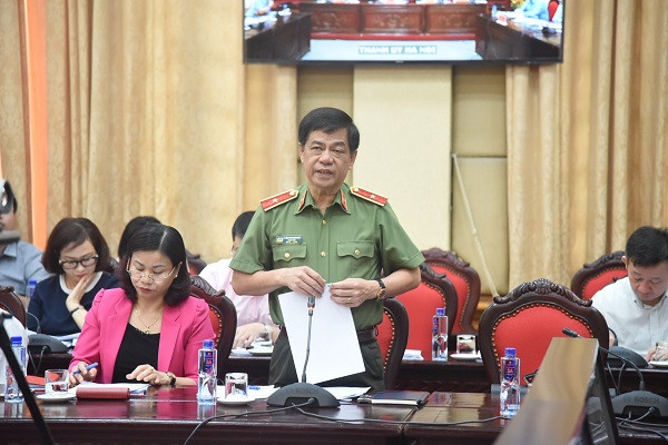 Thiếu tướng Đoàn Duy Khương, Giám đốc CATP Hà Nội phát biểu thảo luận tại hội nghị