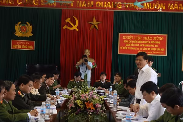 Nêu ý nghĩa buổi làm việc của đoàn công tác CATP là để nắm bắt, chia sẻ khó khăn với lực lượng Công an cơ sở, cũng như giúp thêm điều kiện để xây dựng chương trình công tác năm của CATP; Thiếu tướng Nguyễn Đức Chung bày tỏ cảm ơn sự quan tâm, chỉ đạo, ủng hộ và giúp đỡ của lãnh đạo Huyện ủy, UBND các huyện Ứng Hòa và Mỹ Đức với lực lượng Công an; và mong muốn trong thời gian tới, cấp ủy, chính quyền cơ sở và nhân dân 2 huyện Ứng Hòa, Mỹ Đức tiếp tục quan tâm, ủng hộ, giúp đỡ, để lực lượng Công an hoàn thành tốt nhiệm vụ giữ gìn ANCT, TTATXH địa bàn.