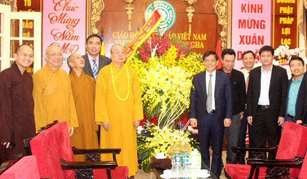 Nhân dịp năm mới 2019, thay mặt Đảng ủy, Ban Giám đốc và lực lượng CATP Hà Nội, Thiếu tướng Đoàn Duy Khương trân trọng tặng quà, lẵng hoa tươi thắm chúc Hòa thượng Thích Thanh Nhiễu cùng các hòa thượng, thượng tọa, Hội đồng Trị sự Trung ương Giáo hội Phật giáo Việt Nam cùng toàn thể các chức sắc, tăng ni, phật tử đón xuân mới luôn mạnh khỏe, thực hiện tốt mọi Phật sự, đóng góp hiệu quả hơn nữa vào sự bình yên, phát triển của Thủ đô, đất nước...
