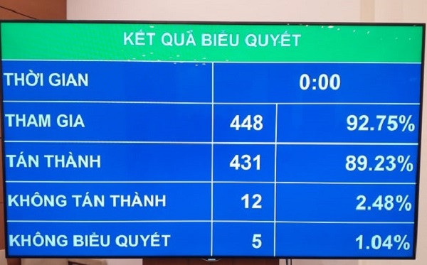 Kết quả biểu quyết thông qua Luật sửa đổi Luật Tổ chức Chính phủ và Luật Tổ chức chính quyền địa phương