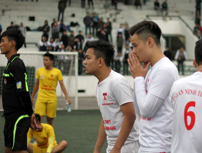 ANTD.VN - Chiều 22-11, cựu vô địch THPT Nguyễn Thị Minh Khai đã trải qua hai hiệp đấu căng thẳng, giàu cảm xúc trước khi đánh bại THPT Quang Trung (Đống Đa) trên chấm luân lưu để ghi tên mình vào bán kết Giải bóng đá học sinh THPT Hà Nội - Báo An ninh Thủ đô lần thứ XVII-2017 Cup Number 1 Active.