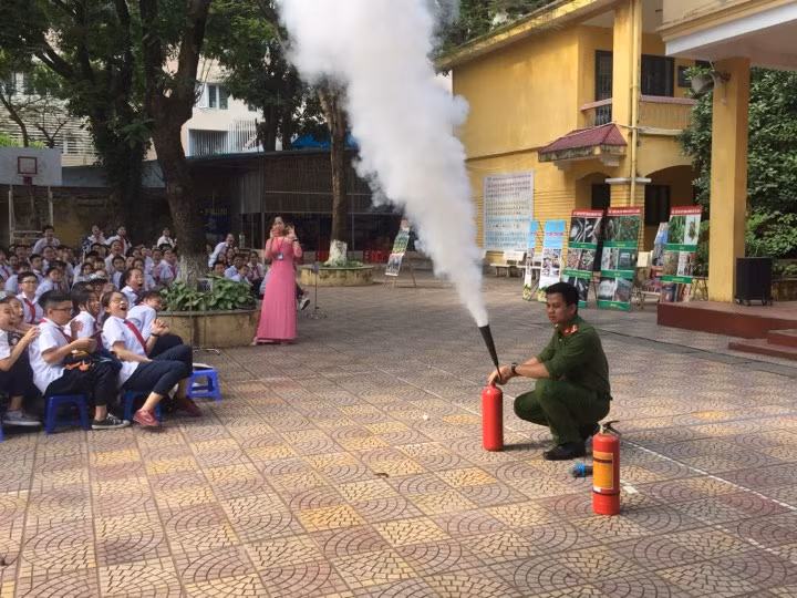 CAQ Đống Đa hướng dẫn các em học sinh cách sử dụng bình cứu hỏa